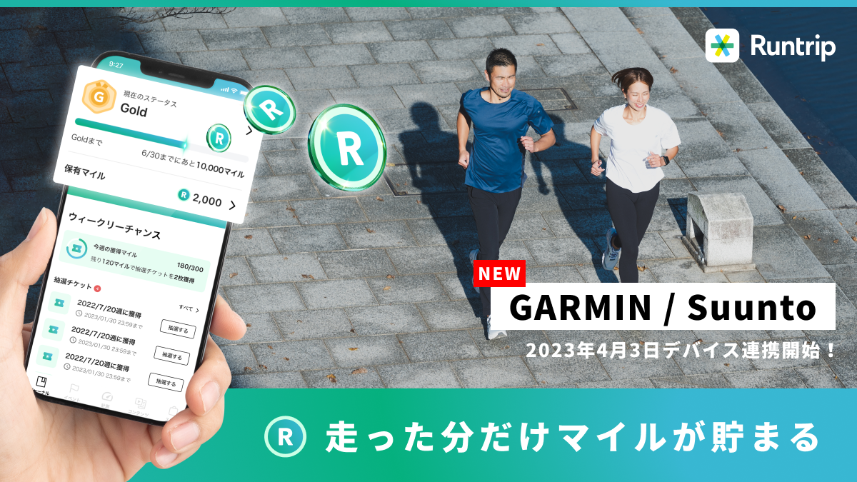 ランナー向けアプリ「Runtrip」、走ればマイルが貯まる「Runtripマイレージプログラム」の対象デバイスとしてGARMIN・Suunto連携を開始