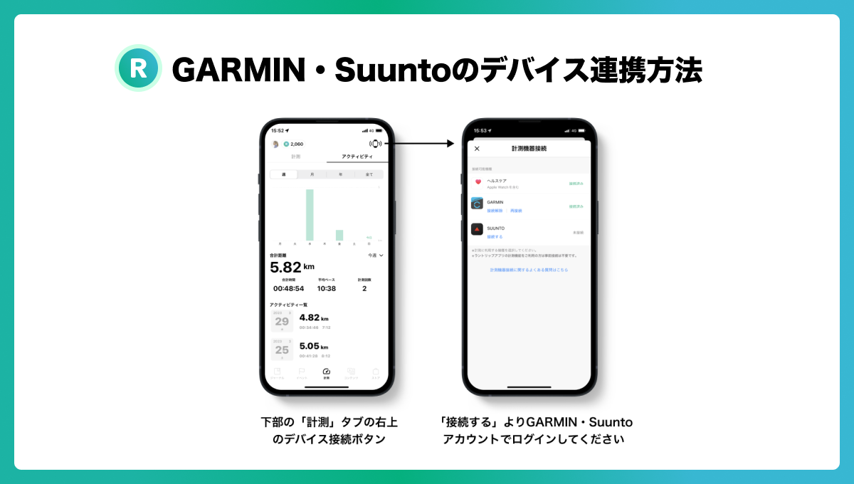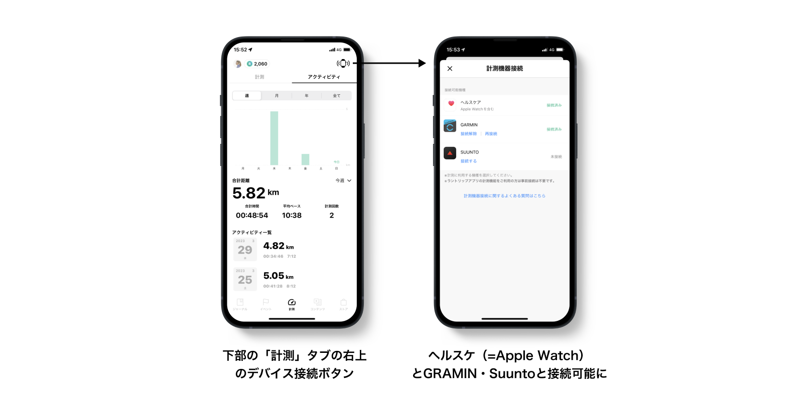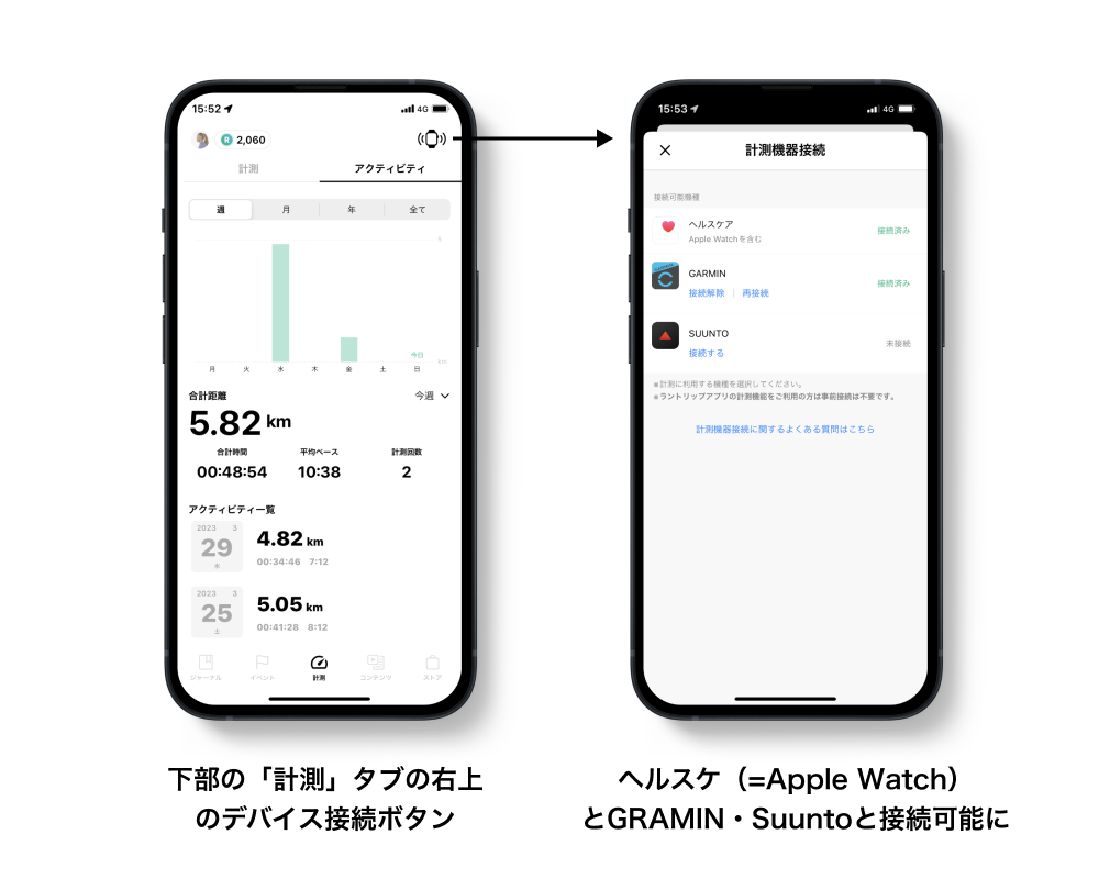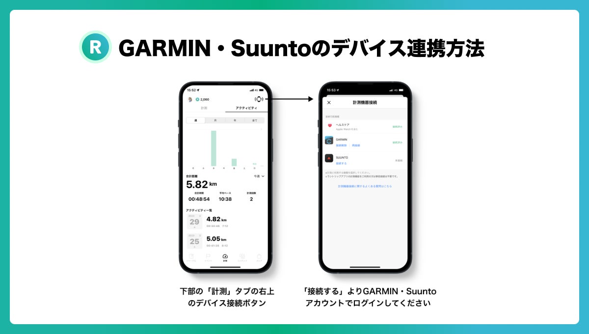 ■ Runtripアプリの計測機能におけるGARMIN・Suuntoデバイス連携方法