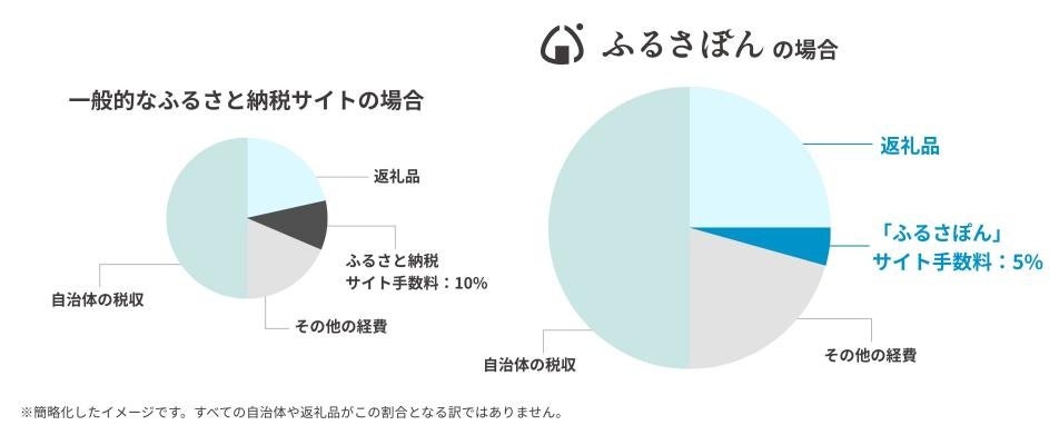 「ふるさぽん」は、ふるさと納税制度の理念を推進する運営方針を採用しています。過度な広告やポイント還元を行わないことで、自治体がふるさと納税サイトに支払う手数料を、一般的なサイトに比べて約半分に抑えています(※公開情報をもとに当社が独自調査)。図1のように自治体はコスト削減が可能となり、寄付者にとってより魅力的な寄付額を設定する選択肢が生まれます。結果として、一部返礼品で「ふるさぽん」ならではの「こだわりの寄付額」が実現可能となりました。