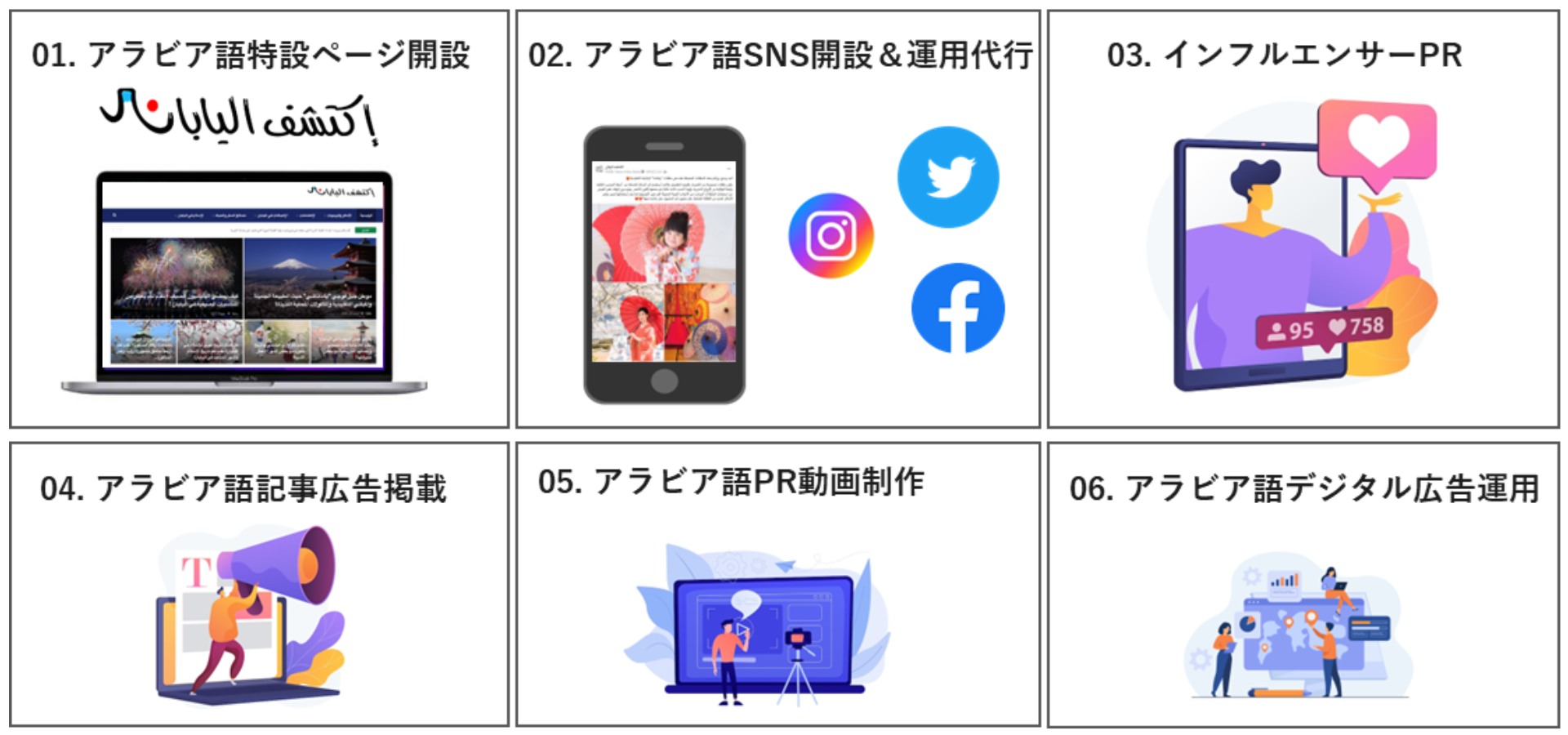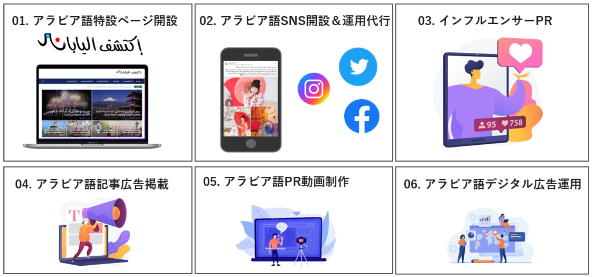 ・アラビア語SNS開設&運用代行:100,000円〜/1ヶ月あたり