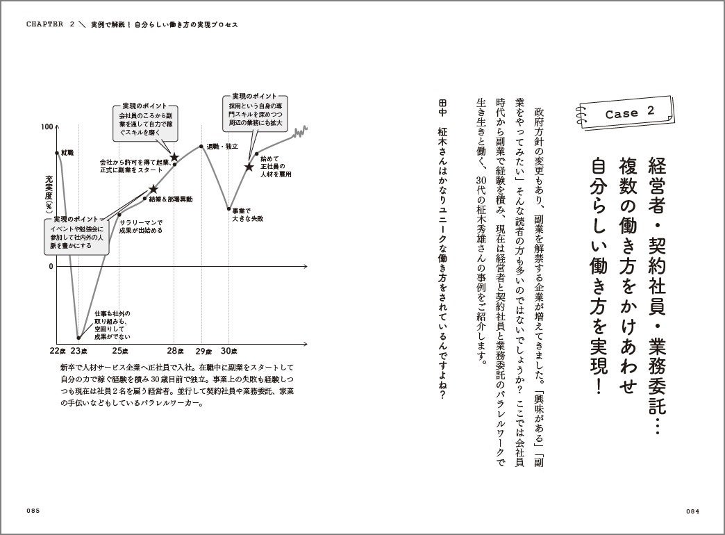 Chapter2 実例で解説!自分らしい働き方の実現プロセス/12年の専業主婦、フリーランスを経て50代で再び正社員へ/経営者・契約社員・業務委託…複数の働き方をかけあわせ自分らしい働き方を実現/40代後半でベンチャー企業へ転職 仕事を通じて新たなスキルを磨く/学び続けることが自信に!注目の新技術を身につけて充実度アップ/体調不良でフルタイム正社員を断念 消去法でフリーランスへ