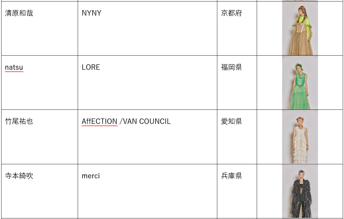 「CREATIVE AWARD」THE FINAL進出者 25名(敬称略、順不同)