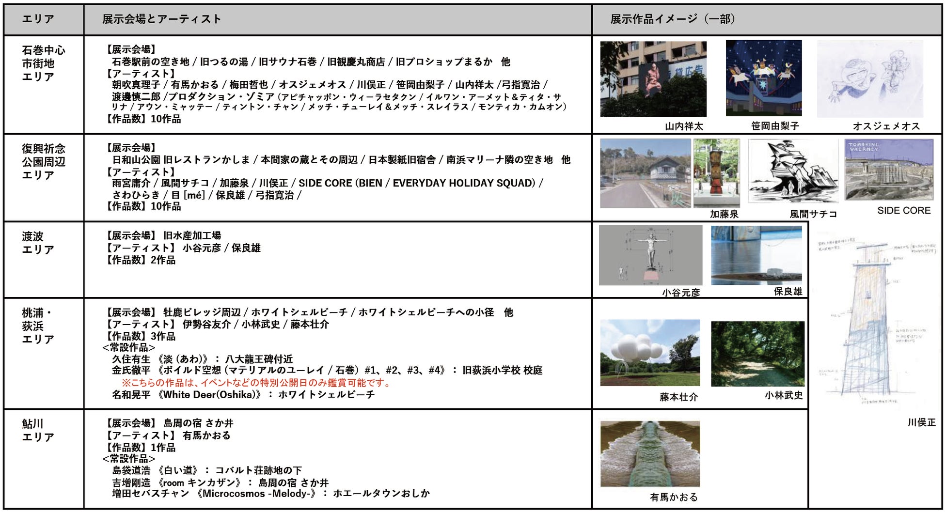 ●会場 宮城県 石巻市街地(石巻中心市街地、復興祈念公園周辺、渡波)、牡鹿半島(桃浦・荻浜、鮎川)