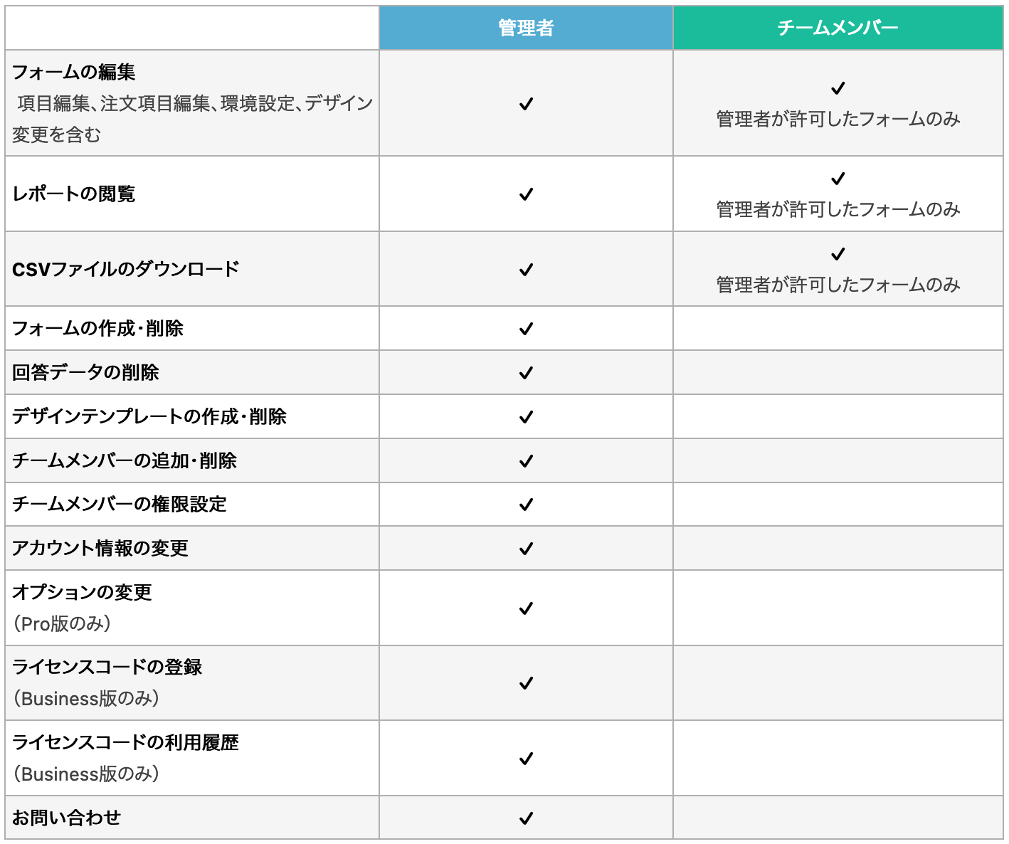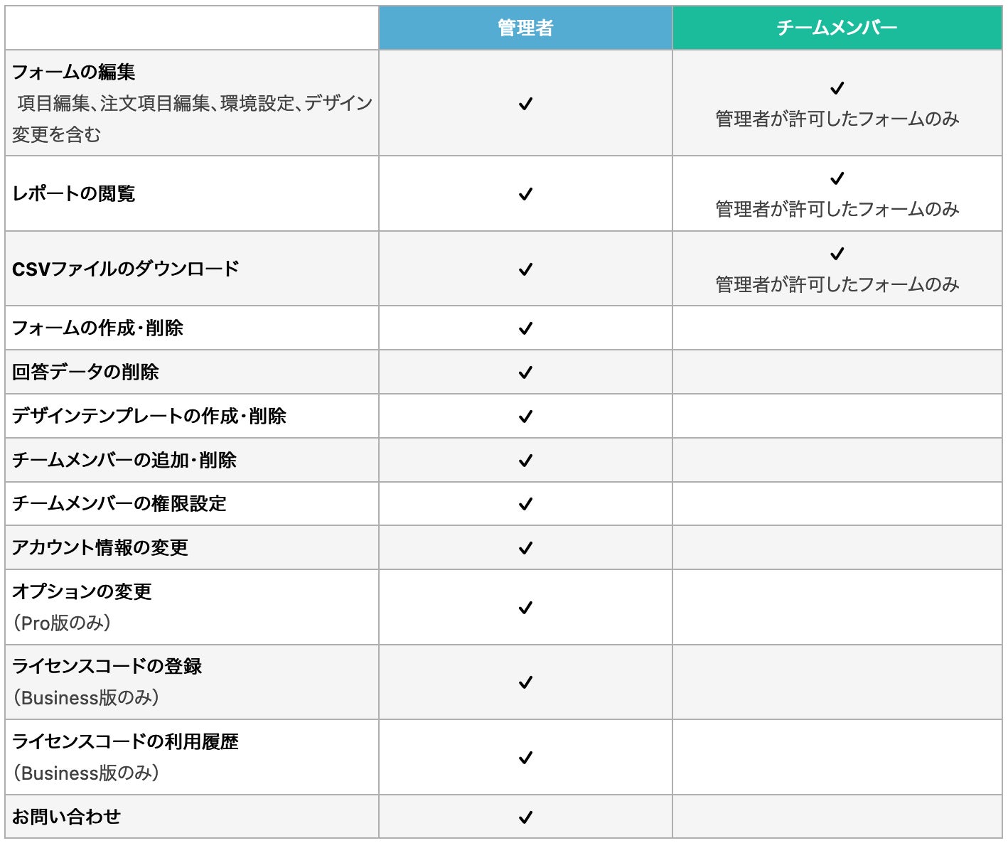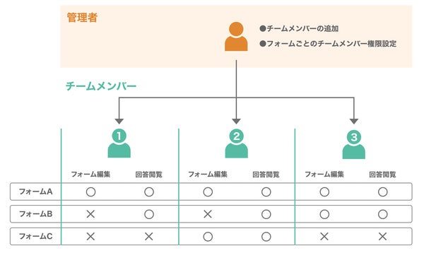 追加したチームメンバーに対して「フォーム編集」「フォームの回答閲覧」権限をフォームごとに設定可能、より幅広いシーンに対応できるようになりました