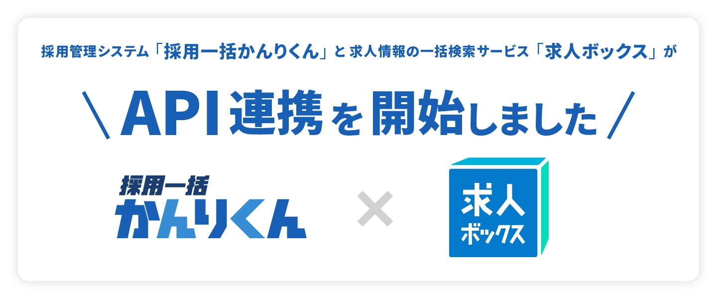 HRクラウド株式会社(本社:東京都千代田区、代表取締役社長:中島 悠揮 以下「当社」 )は、当社が提供する採用管理システム「採用一括かんりくん」と株式会社カカクコム(本社:東京都渋谷区、代表取締役社長:村上 敦浩)が提供する求人情報の一括検索サービス「求人ボックス」とのAPI連携を開始しました。