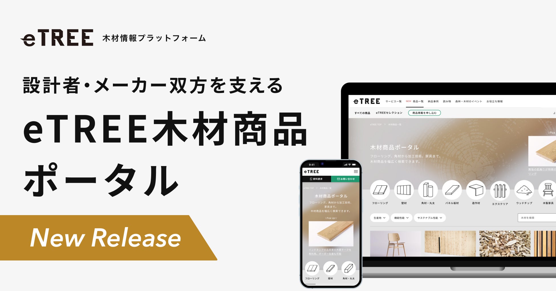 「Sustainable Forest」をミッションとする株式会社森未来(本社:東京都港区、代表取締役:浅野純平)は、木材情報プラットフォーム「eTREE」において、木材商品・木質建材の紹介に特化した『eTREE木材商品ポータル』を11月21日にリリースしました。本サービスは、木材商品の情報集約を通じて、情報の分断が起きがちな川上と川下を繋げ、木材利用の活用促進を目指します。