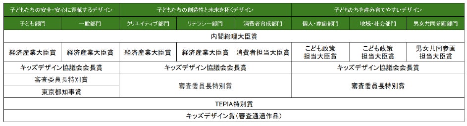 キッズデザイン賞とは、2007年の設立以来、子どもの安全・安心と健やかな成長発達に役立つ優れた製品・サービス・空間・研究活動などを表彰し普及を後押しすることで、子どもを産み育てやすい社会づくりを目指す顕彰制度です。子どもが使うものはもちろん、大人が使うものでも子どもに配慮されたものやサービスはすべて対象としています。