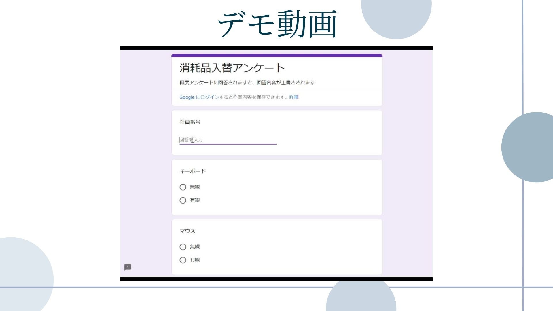 アンケートの集計とサマリー作成の工数削減と自動化にフォーカス。手作業で行われていた物品購入希望のアンケート集計の効率化を目的として、集計〜サマリーの作成まで自動化。