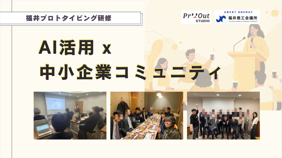 小売、医療、飲食など多様な業界にプロトタイピング研修を実施している「プロトアウトスタジオ」(運営:dotstudio株式会社)は、福井商工会議所と連携し、地域に根差したAI活用コミュニティの形成を目指す実践型ワークショップを2024年11月~2025年1月に開催しました。