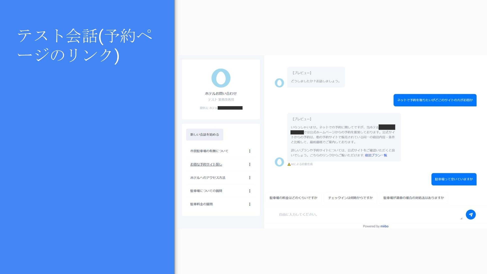 フロントへの問い合わせ対応の自動化と顧客体験の向上にフォーカス。メールでの問い合わせ対応によってひっ迫するホテルのフロント業務の工数削減を目的として、ナレッジで学習させたAIを用いて問い合わせ対応数を削減すると同時に、顧客目線でのレスポンス速度を向上。