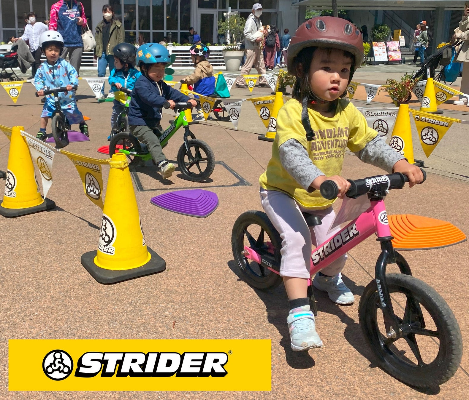 <ストライダー>各種を専用の特設コースで体験!参加者には、<ストライダー>試乗記念として「オリジナルステッカー」を1枚プレゼントします。