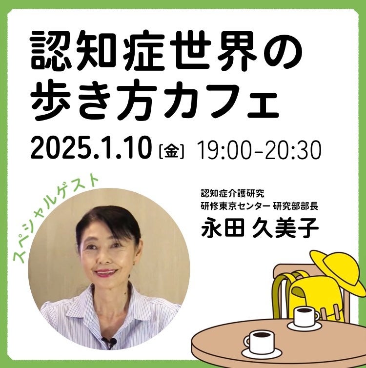 「認知症」をキーワードに、みんなで認知症について学び・語り合う場である「認知症世界の歩き方カフェ」が25年1月10日(金)にオンライン開催。