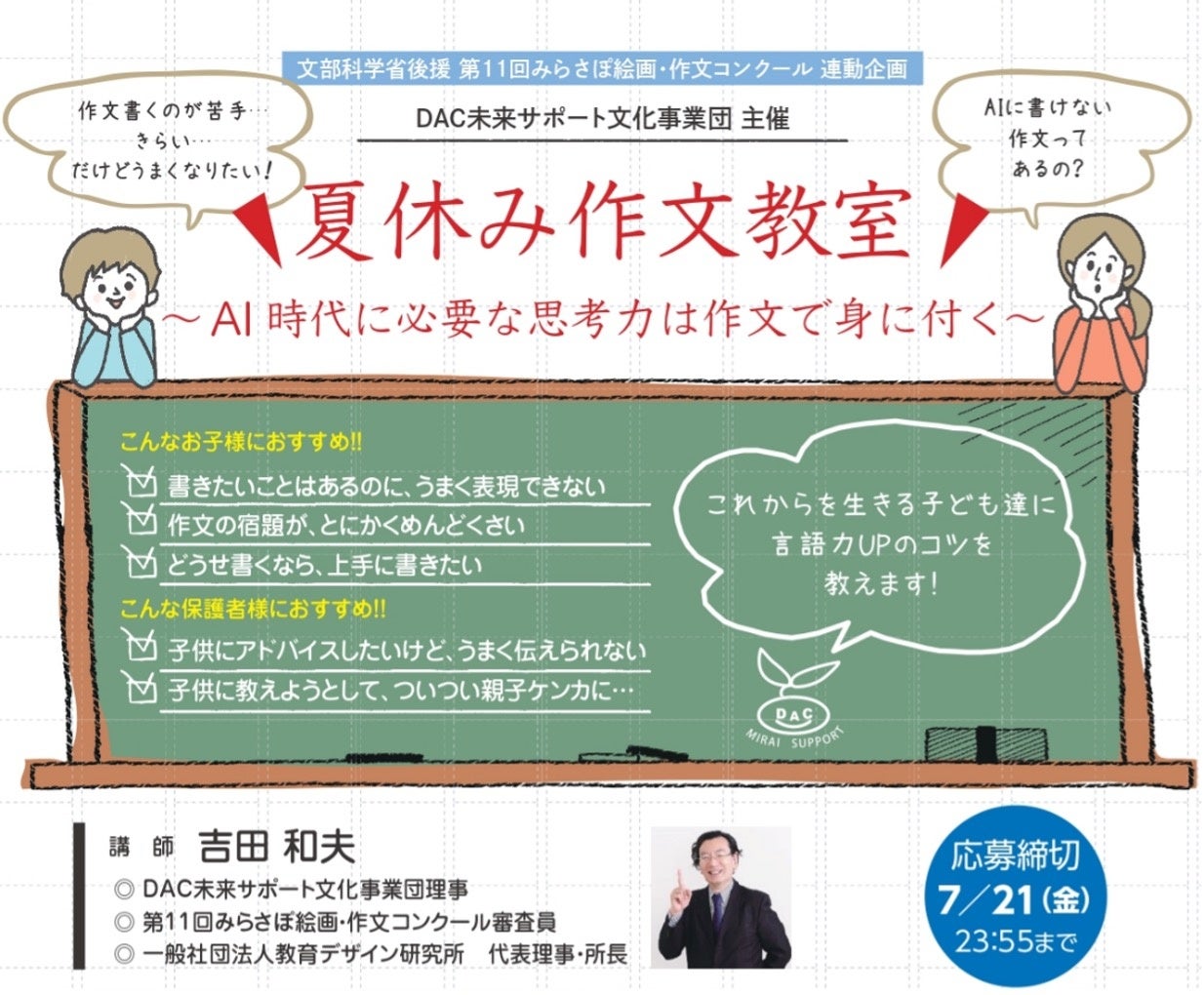 AI時代に必要な思考力は、作文で身につく!夏休み作文教室を東京・上野とオンラインで開催