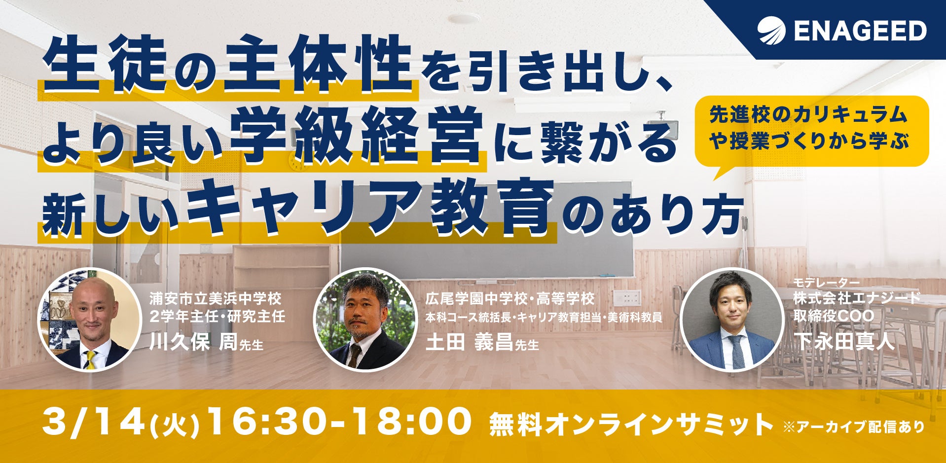 2023/3/14(火)生徒の主体性を引き出し、より良い学級経営に繋がる新しいキャリア教育のあり方 https://www.enageed.jp/20230314_e_seminar
