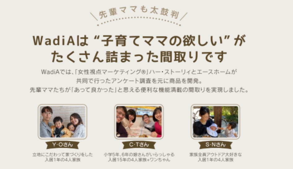 商品コンセプトやプランニングに織り込むことで、子育て世帯においても、家族みんなが暮らしやすく「穏やかな幸せ」を実現する住まいとして新商品「WadiA(ワディア)」が誕生しました。