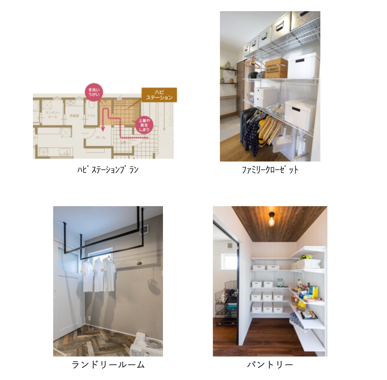 これらをプランニングアイテムとして整備し、「パントリー」「ファミリークローゼット」「ランドリールーム」そしてキッズデザイン賞を受賞した「ハビステーション」としてWadiAでのプランニングに生かしました。