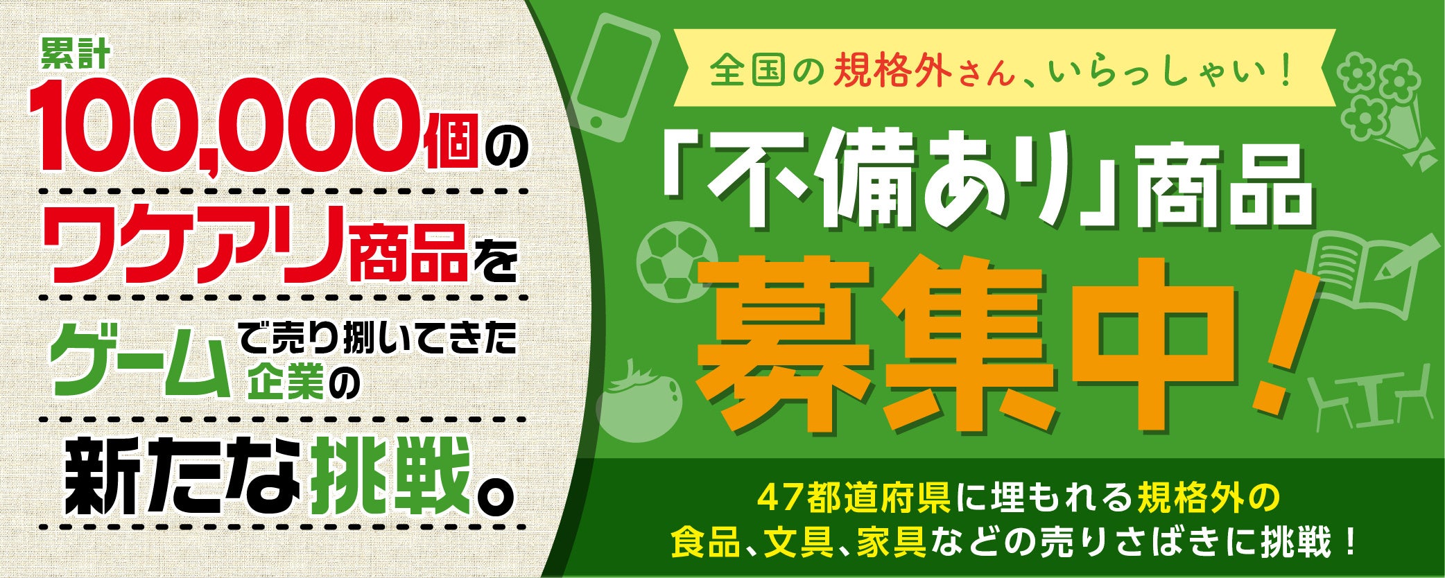 ~ 累計100,000個のワケアリ商品をゲームで売りさばいてきた企業の新たな挑戦 ~