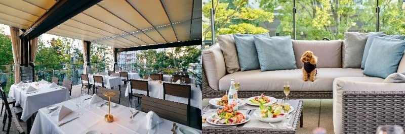 ペット同伴可のテラス席では四季折々の自然あふれる緑地を眺めながら、優雅な時間をお楽しみいただけます。ランチからディナーまで終日営業をしており、ハワイの店舗とは異なるラグジュアリーでありながら親しみやすく洗練されたモダンな空間でいつでもお客様をお待ちしております。本格的なバーカウンターや、大きな窓からの景観を楽しめる窓側の席、煌びやかなシャンデリアが印象的なメインダイニング、プライベート空間が確保された個室など、様々なシーンでご利用いただけます。