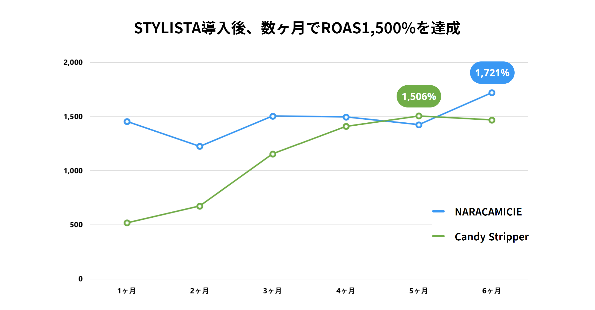 株式会社SPRING OF FASHION(代表取締役:保坂忠伸、所在地:東京都渋谷区、以下当社)は、当社が運営するコミュニティ構築プラットフォーム「STYLISTA(スタイリスタ)」を、ナラカミーチェジャパン株式会社が運営する公式通販サイト「ナラカミーチェ公式オンラインストアNARACAMICIE」(以下「ナラカミーチェ」)やブランデックス株式会社が運営する「Candy Stripper」(以下「キャンディストリッパー」)に導入後数ヶ月で、ROAS(広告費用対効果)1,500%超えを達成したことをご報告いたします。