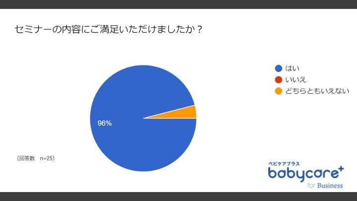 企業向け子育て支援サービス「ベビケアプラス for Business」 受講者の96%がセミナーの内容に満足と回答、男性育休の必要性も高いことがわかる結果