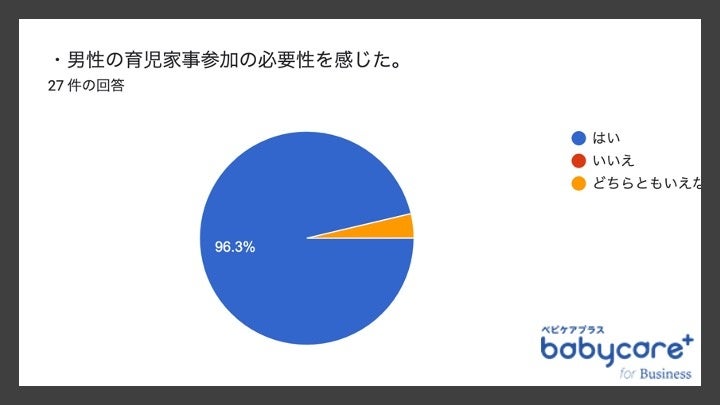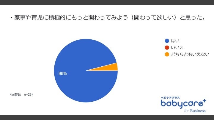 - 96%が「男性の育児家事参加の必要性を感じた」と回答