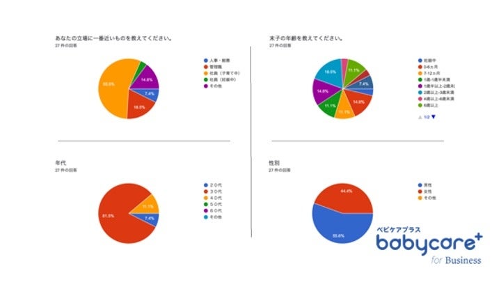 今回、トライアル導入企業向けに行ったベビケアプラスの導入セミナーに参加いただいた従業員の方のアンケート結果をまとめ、以下に発表します。