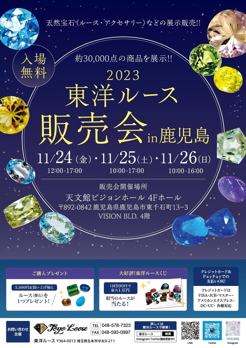 【東洋ルース】47都道府県 全国制覇への道 28番目となる地域は“海、島々、火山、高原など多彩な自然が魅力”の「鹿児島県」 11月24日~26日開催の「東洋ルース販売会in鹿児島」で鹿児島県に初上陸!
