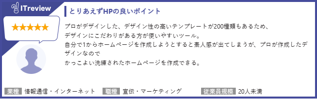 【「とりあえずHP」のレビューページはこちら】