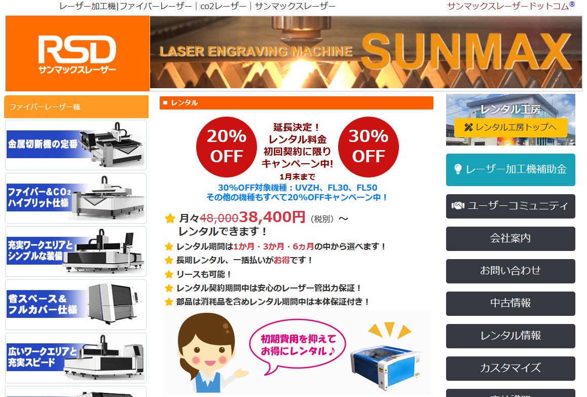レーザー加工機レンタル価格を最大30%OFF!!好評に付き、来月1月まで期間延長決定!売り切れ必死、キャンペーン期間内に申し込みで期間経過後も適応!