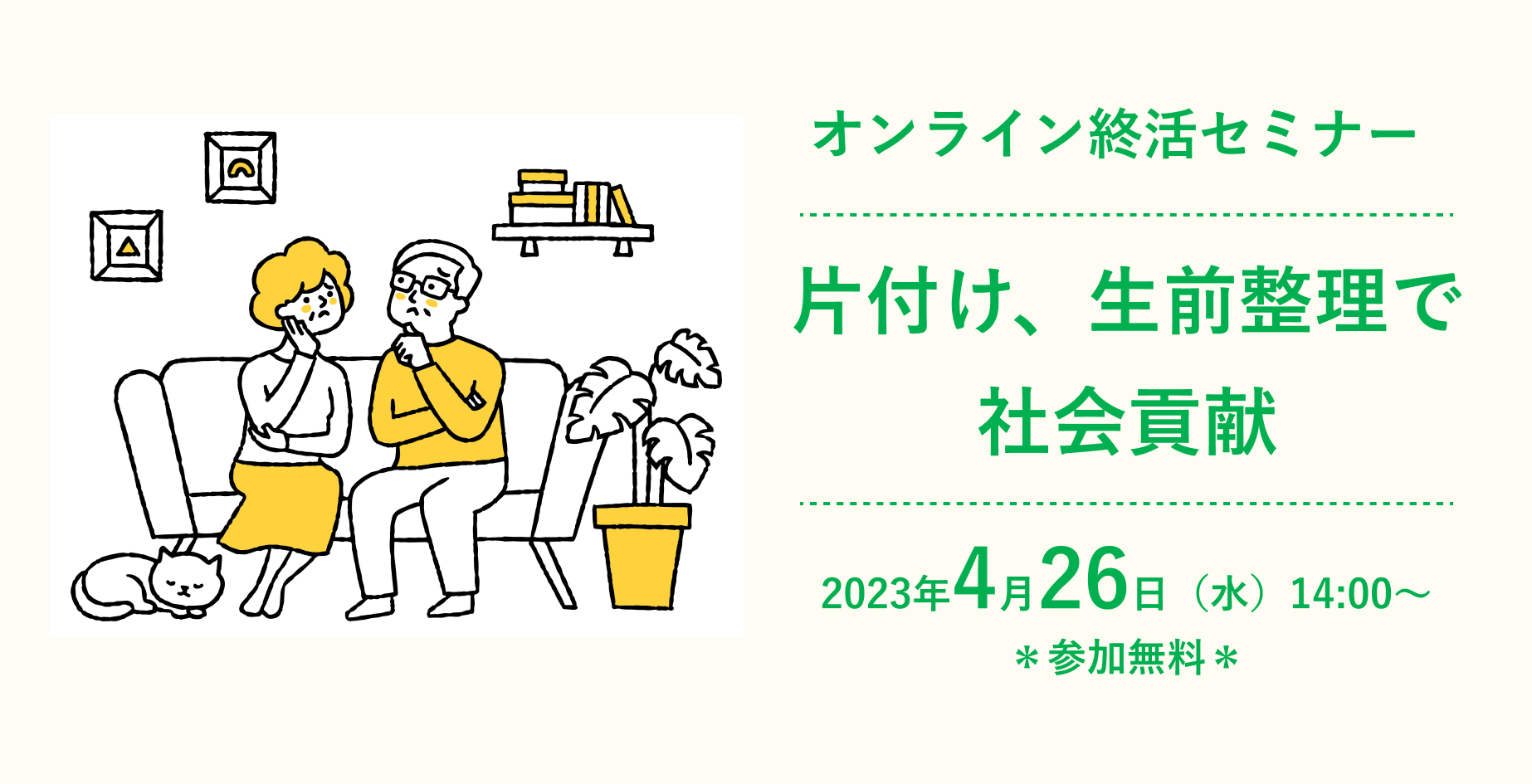 公益財団法人日本対がん協会は、2023年4月26日(水)に、オンライン終活セミナー「片付け、生前整理で社会貢献」を開催いたします。
