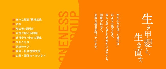 ワンネス財団は、ウェルビーイングの理論に基づいたカリキュラムにより、精神疾患や様々な障害、各種依存症、触法者など様々な生きづらさを抱えた人々の孤独の解消と自己実現を支援する専門機関です。女性専門支援やゲームを始めとする未成年の依存症、家族の支援、ひきこもり支援など、対症療法的な福祉の枠組みを超え「生き甲斐を持って、人生を生き直すことのできる社会」を目指しています。