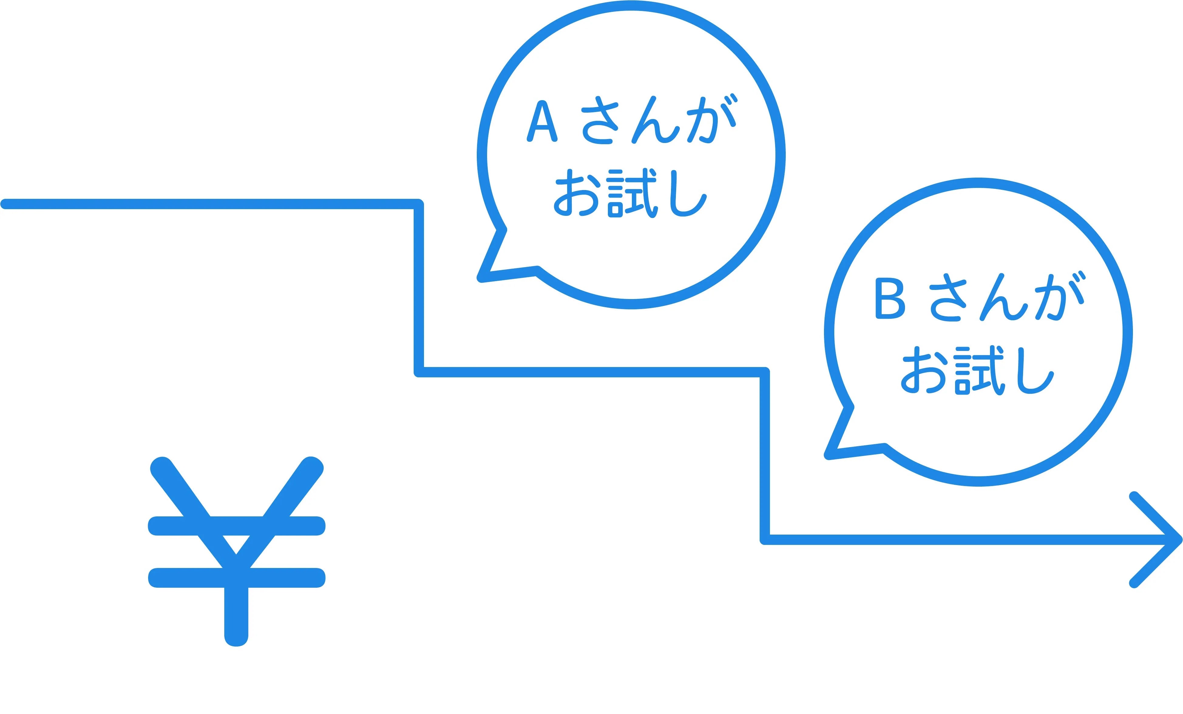 また、自分より前に同じ商品を「お試し」したお客様がいらっしゃる場合は、その方のお試し費用も合わせて差し引かれますので、お得に購入することができます。