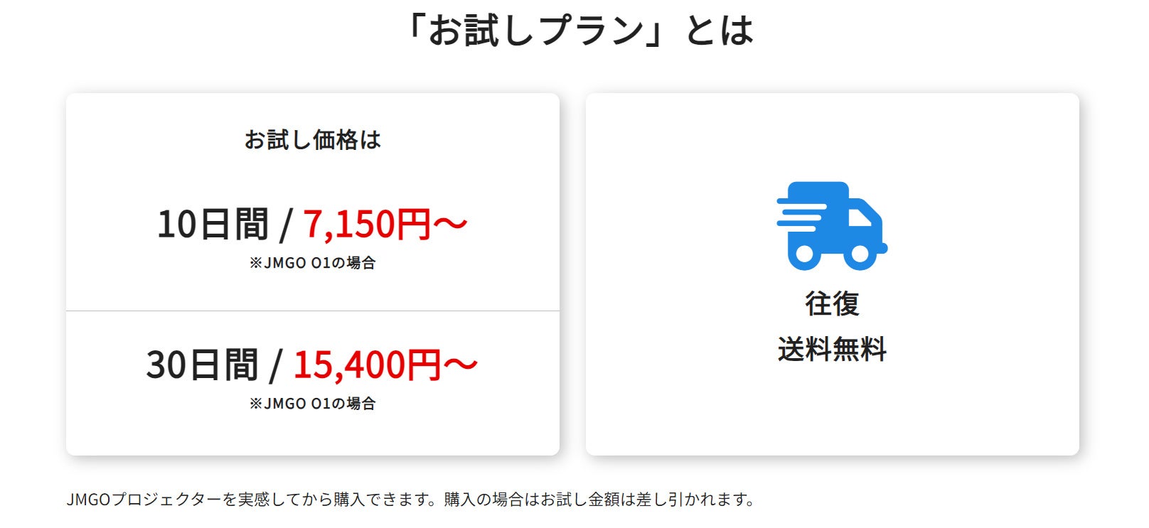 JMGOプロジェクターをもっと手軽に「お試しプラン」のご案内
