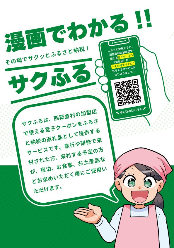 岡山県西粟倉村(村長:青木秀樹、以下西粟倉村)で、同村のふるさと納税事業の支援委託業務を行なうエーゼロ株式会社(代表取締役:牧大介、以下エーゼロ)は、年末に向けふるさと納税が活発化する2022年12月10日より”その場でサクッと”ふるさと納税ができる新サービス『サクふる』の本格運用をスタートします。