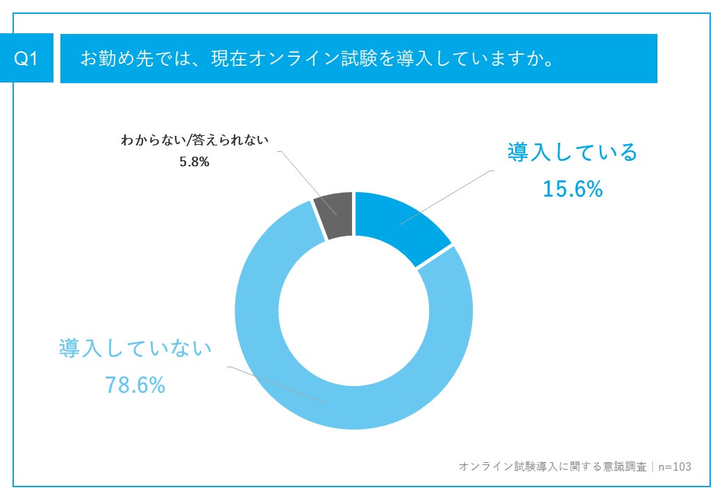 「Q1.お勤め先では、現在オンライン試験を導入していますか。」(n=103)と質問したところ、「導入していない」が78.6%という回答となりました。