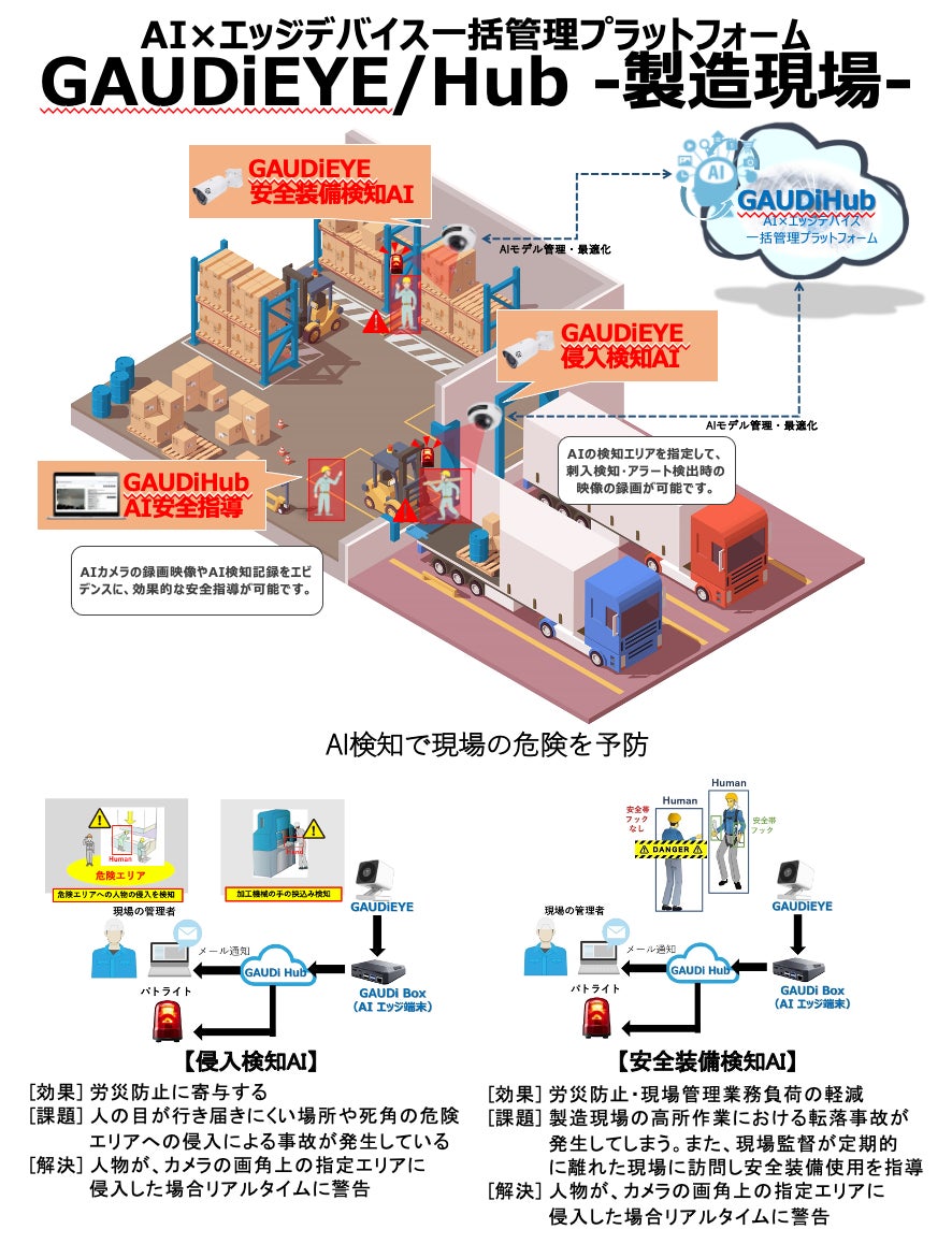 株式会社GAUSS (本社:東京都新宿区、代表取締役:宇都宮 綱紀)は、エッジAIカメラ「GAUDi EYE」の開発・運営、IoT管理/AI開発プラットフォーム「GAUDi Hub」の開発・運営、AI受託開発、AI/ITコンサルティングを行っている会社です。