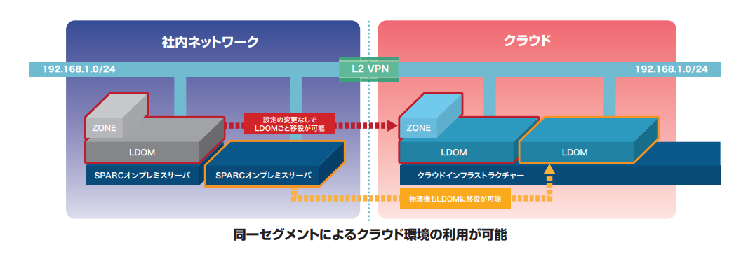 当社コネクティビティサービスPrivate Connectを利用して接続することで、お客様のネットワーク環境をそのままクラウドへL2延伸可能。IPアドレスそのままで簡単にシステム環境の移設が可能です。