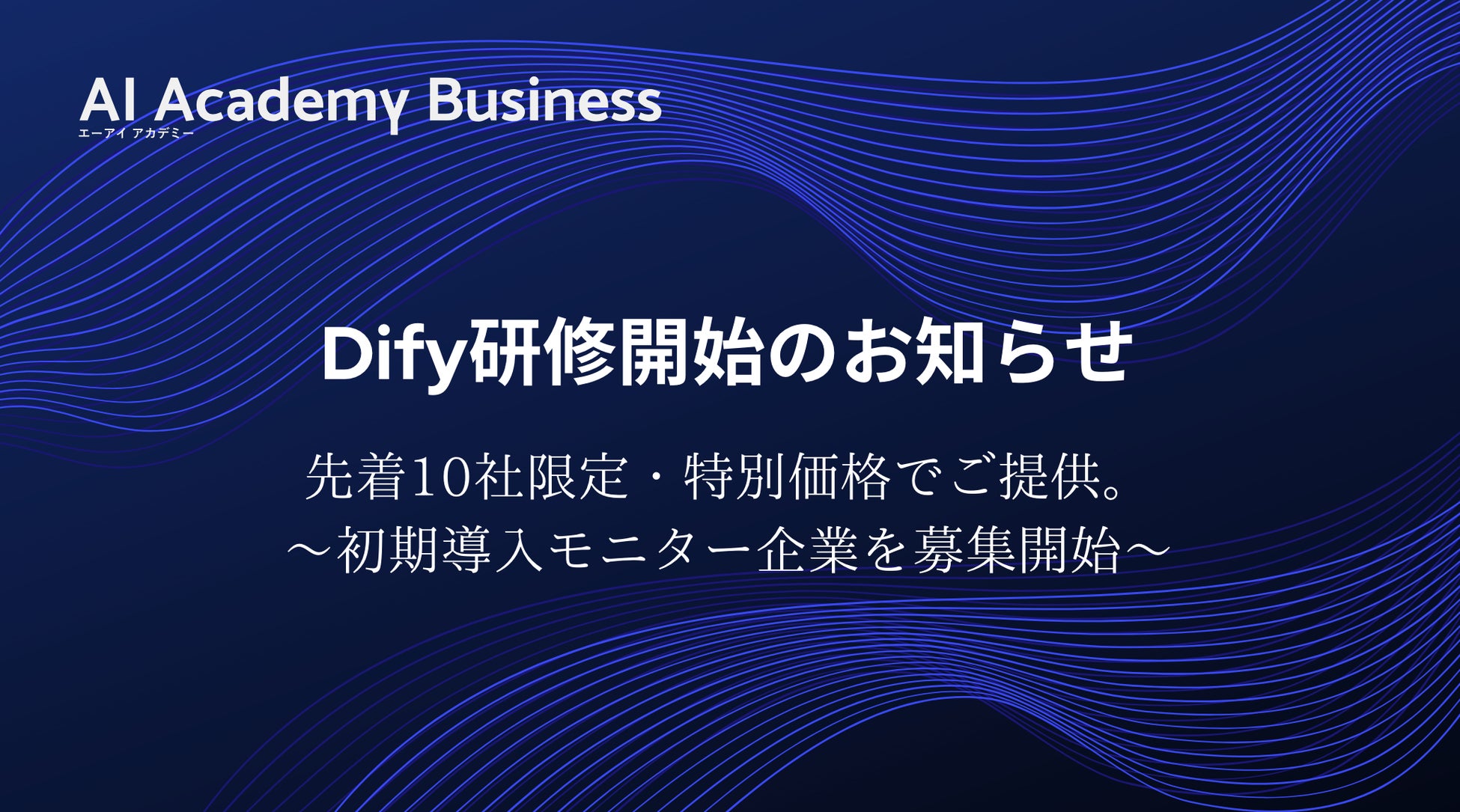 【Dify研修開始のお知らせ】 先着10社限定・半額でご提供。初期導入モニター企業を募集開始