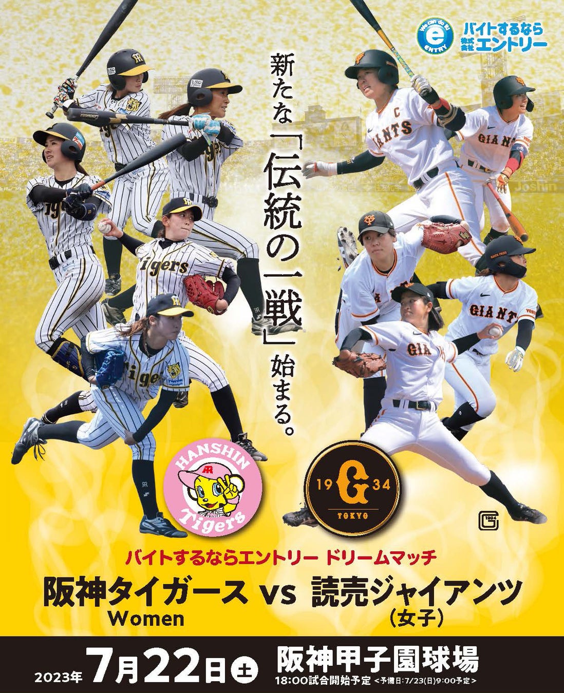 阪神タイガースWoman vs読売ジャイアンツ(女子)戦の冠協賛として『バイトするならエントリー ドリームマッチ』を7月22日(土)に開催