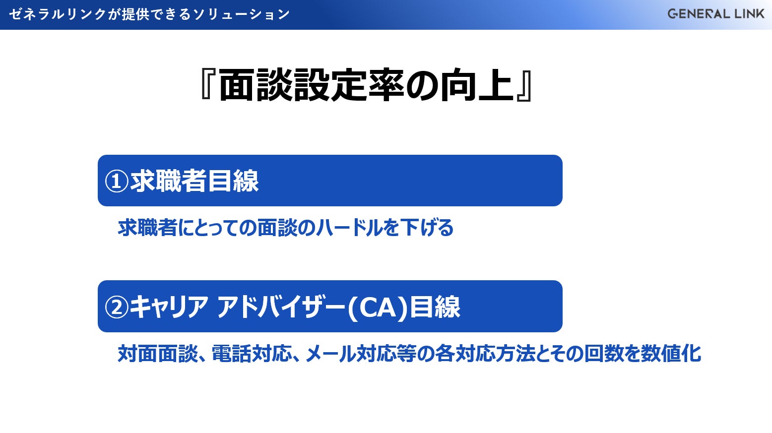株式会社ゼネラルリンク(所在地:東京都渋谷区、代表取締役社長:廣瀬 真一郎)は、人材エージェントが更なる事業拡大を実現するための適切なプランを提案し支援するコンサルティングサービス「エージェントパートナーズ」の提供を始めました。