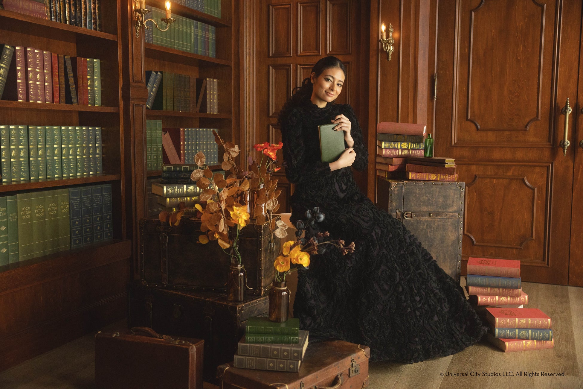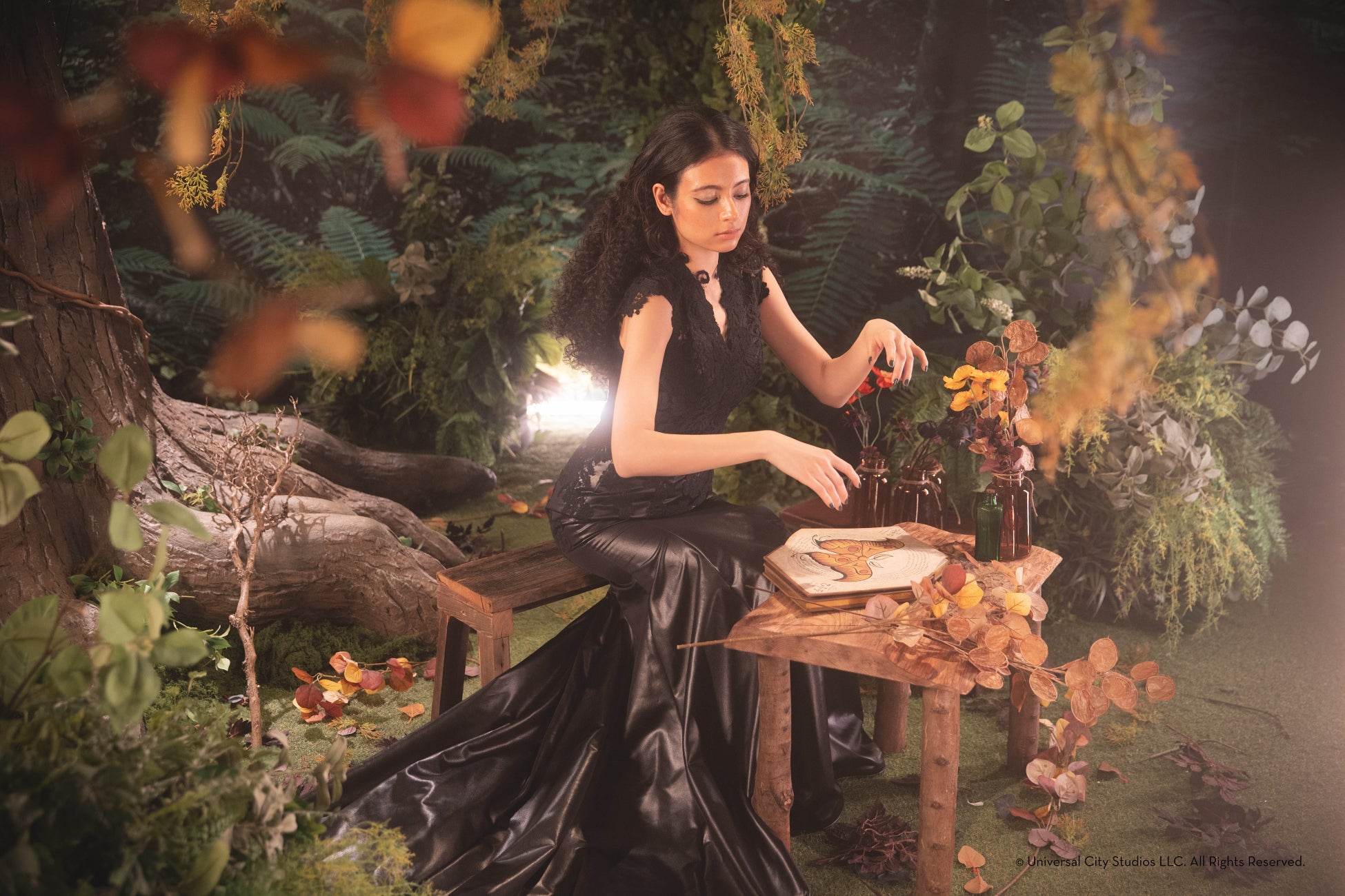 フォトプランでは「エルファバ」、「グリンダ」などの劇中衣裳をモチーフにしたオリジナルドレスを身に纏い、踊るような仕草や胸が高鳴るワクワク感、物語のようにドラマティックに心が動く瞬間まで、あなたの思い描くシーンを美しく切り取ります。細部まで作り込まれたスタジオセットと撮影アイテムにより、まるで映画『ウィキッド』シリーズ2作品の世界に入り込んだような没入感あふれるフォト体験が実現いたしました。