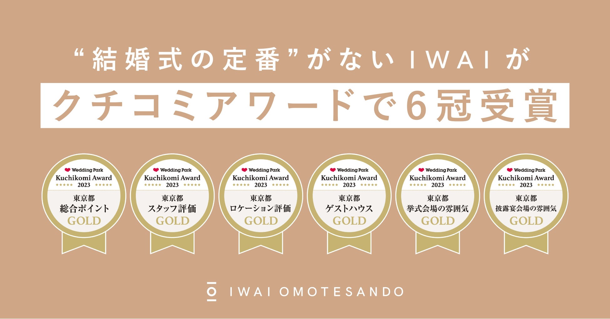 IWAI OMOTESANDO、「ウエディングパーククチコミアワード 2023」にて6冠受賞