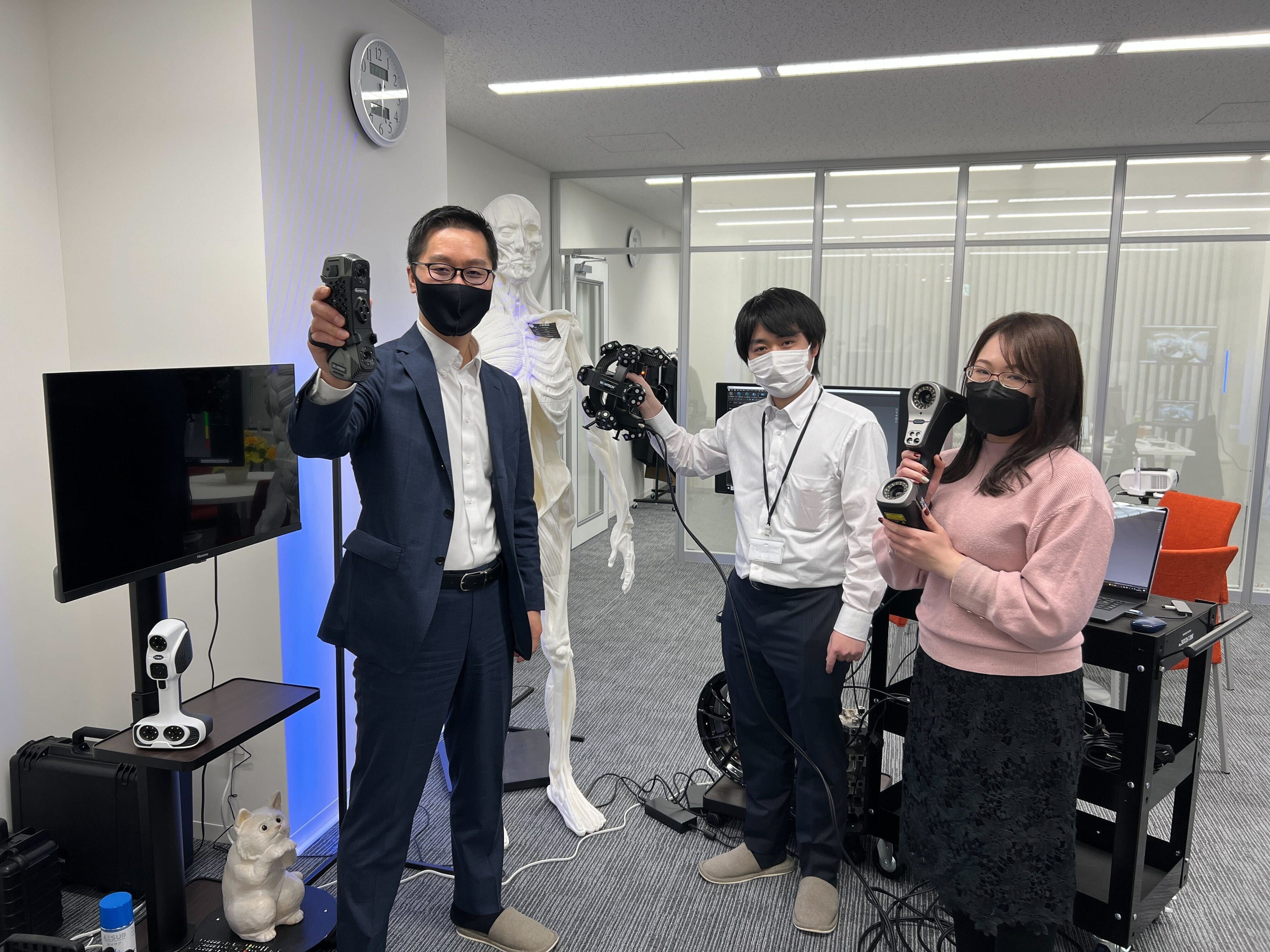 3Dスキャナーに関しては、ハンディー型3Dスキャナー、ハンドル型3Dスキャナーを取り揃え、実機の見学だけでなく、3Dスキャナーのデモンストレーションも実施しています。