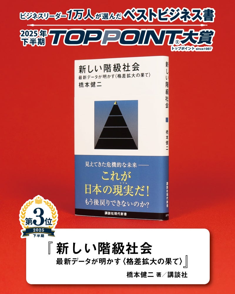 第3位には、『新しい階級社会 最新データが明かす〈格差拡大の果て〉』(橋本健二 著/講談社(講談社現代新書))がランクイン。格差拡大に歯止めがかからない日本社会の実態を、日本の階級構造研究の第一人者が最新の調査データを踏まえて明らかにした1冊です。