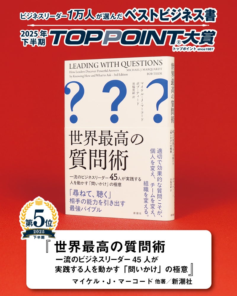 『TOPPOINT』の購読者のうち、約半数が経営者層、約6割がマネジメント層です。今回のベスト10冊を見渡すと、こうしたビジネスリーダーたちが、現代社会の「分断」の原因を分析した書籍(『アメリカの新右翼』『新しい階級社会』『ノスタルジアは世界を滅ぼすのか』)だけでなく、AI時代における「人間の役割」を考える書籍(『世界最高の質問術』『アルゴリズム・AIを疑う』)にも高い関心を寄せていることがうかがえます。さらにランキングからは、人生を豊かにする「生き方・働き方」を模索する姿勢も読み取ることができます(『一生健康に働くための心とカラダの守り方』『Rich Life』)。
