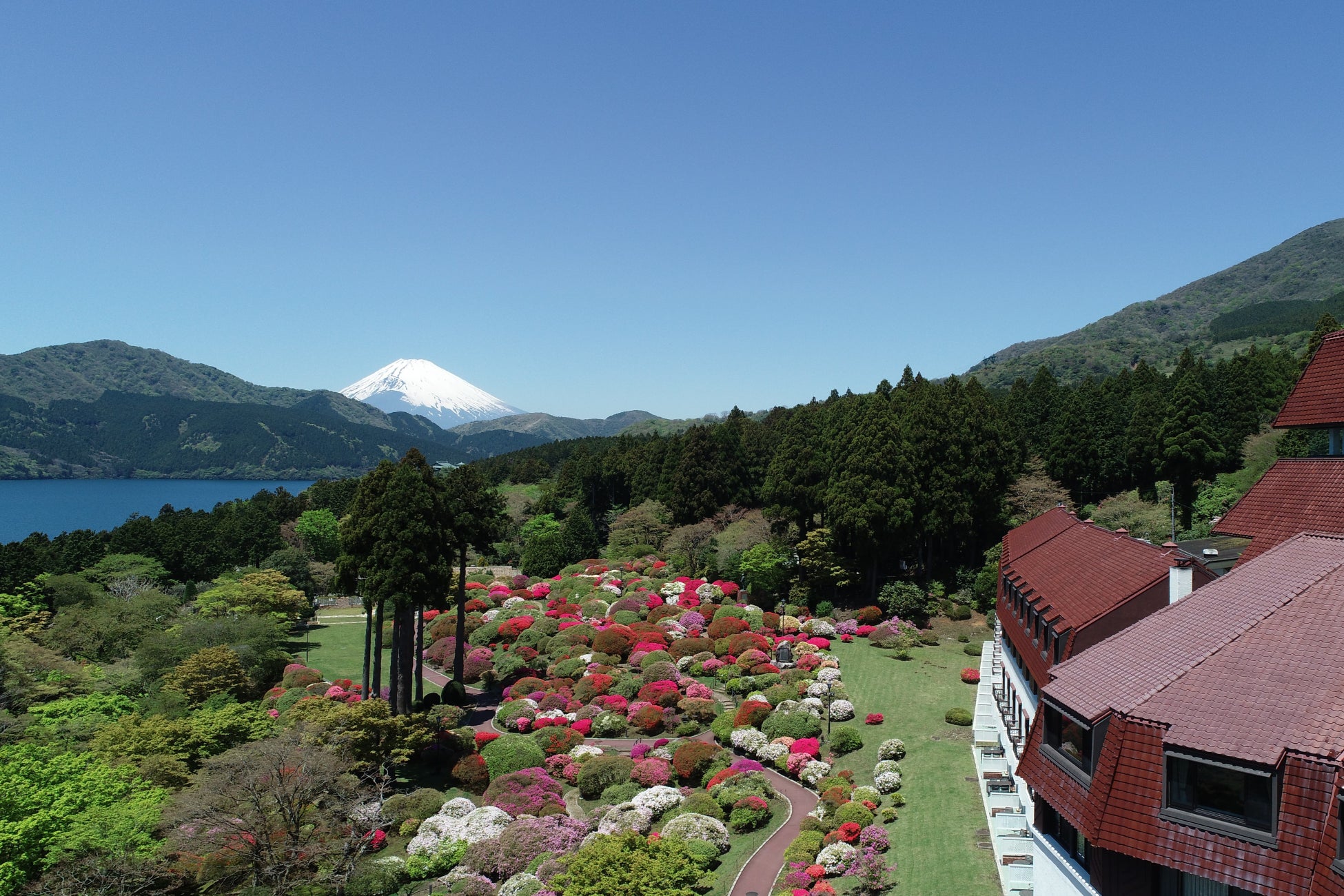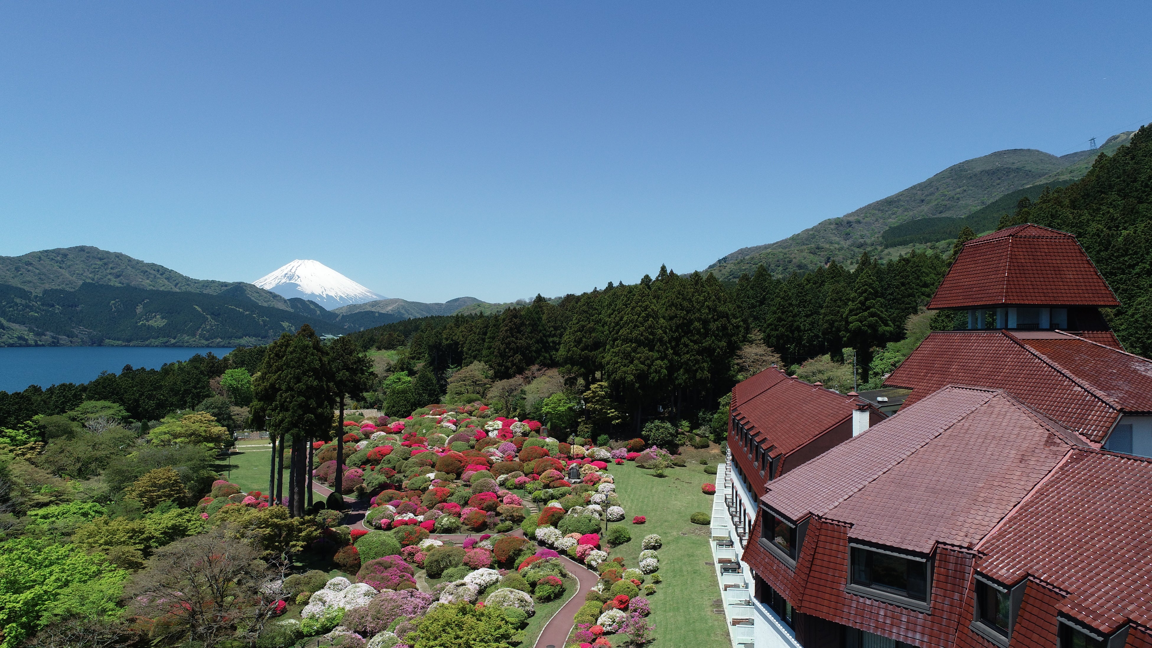 “小田急 山のホテル“は、岩﨑小彌太男爵が、1911年(明治44年)に別邸を建てた由緒ある地にあります。男爵が別邸に造ったツツジ庭園とシャクナゲ園は、1948年(昭和23年)に“小田急 山のホテル”がオープンした後も、現在まで受け継がれています。毎年春を迎えると、他ではほとんど栽培されていない江戸時代を代表する30の古品種を含む84種類・約3,000株のツツジ、日本へ最初に導入された西洋シャクナゲ、ゴーマー・ウォータラーの元株を含む42種類・約300株のシャクナゲがそれぞれ咲き誇り、芦ノ湖や富士山を借景にした色鮮やかなツツジ庭園をお楽しみいただけます。