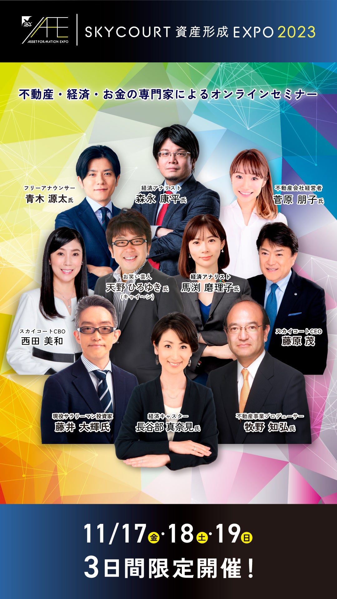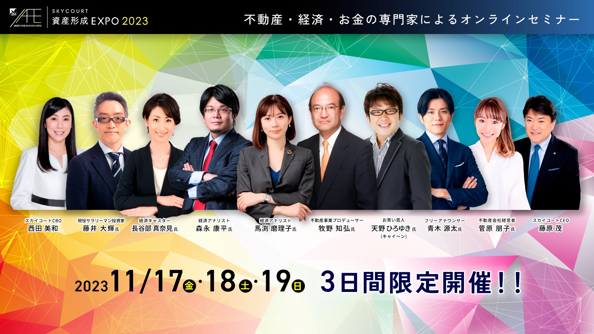 無料で参加できるオンラインセミナー「SKYCOURT 資産形成EXPO 2023」を開催します(11月17日(金)から19日(日))
