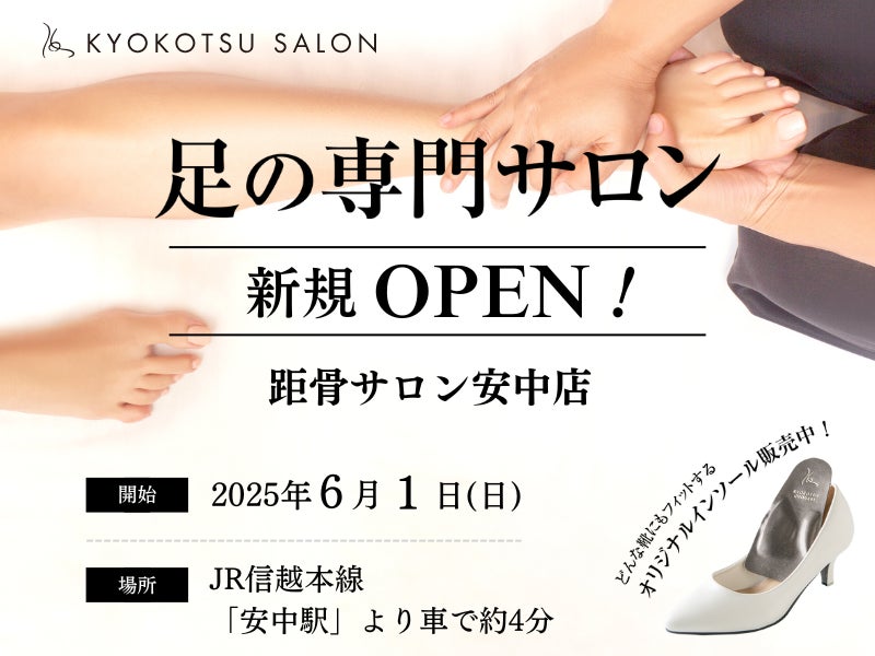 SNSで話題の足の専門サロンが、全国98店舗目となる「距骨サロン安中店(群馬県安中市)」を2025年6月1日(日)に新規OPENいたします。