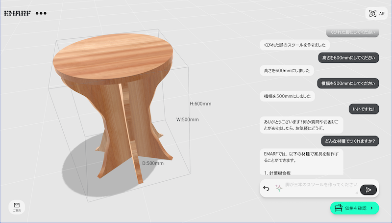 AIとの会話を通じてオリジナル家具制作を可能にする「EMARF AI」α版が1ヶ月限定公開