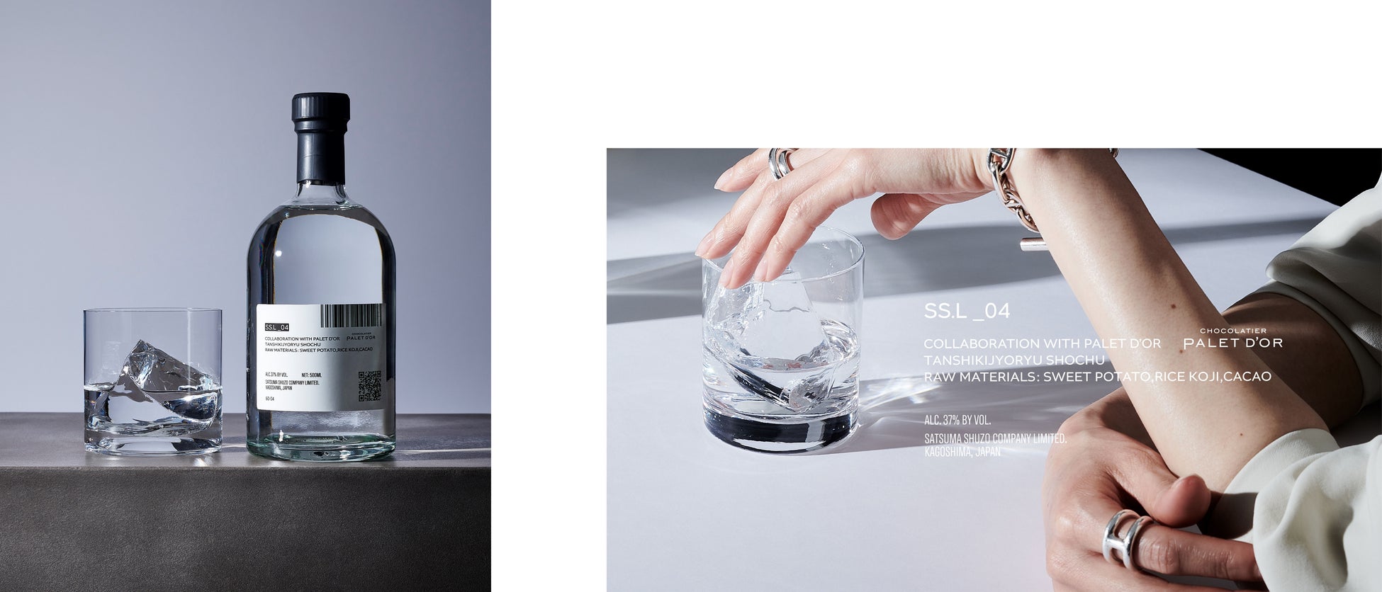 今回新発売する『SS.L_04』は、カカオ豆からチョコレートまでを自社で一貫製造するチョコレート専門店「ショコラティエ パレ ド オール」とコラボした「カカオ焼酎」です。トリニダード・トバゴ産の上質なカカオと「黄金千貫」と呼ばれるさつまいもを用い、薩󠄀摩酒造が継承してきた焼酎の伝統的な製法で2つの素材の風味を調和させた表現力豊かな焼酎を造りあげました。